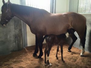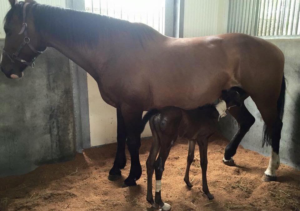 A feel-good story about our old Salute/Dutch Gold mare, DP Debut, bred by Susie Duddy and dam of Cooramin Roxy Hit, Cooramin Rhapsody Hit, Cooramin Rialto Hit and Cooramin Raspberry Hit, all by Royal Hit. The gorgeous Debut (aka Big Mumma) is now owned by Jen and Ty Nichols and unfortunately no longer breeding, but she is currently in the process of adopting an orphan TB foal! With a little help from domperidone, she started lactating and fell in love with little Elle, who today started drinking from Debut on her own. What a wonderful mare she is!! Thanks to Jaymie Loy for the photos and all her hard work to make this adoption successful.