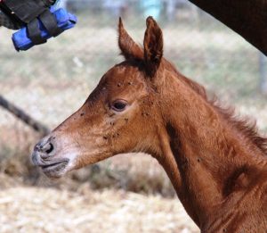 We have tried for four years to get sentimental favourite mare Aloha Crystal Bell in foal in hope of breeding a daughter from her to continue the line, as she is a sister to Heather’s retired FEI horse Aloha Titan and was herself an Australian Champion. It was cause for celebration last year when the old girl finally went in foal via live cover with Belcam Coalac (Capone x Grannus II). Well, this morning the much-anticipated foal arrived – a COLT!! Please meet the (thankfully very cute) Cooramin Crackerjack! He will be for sale at a very affordable price.